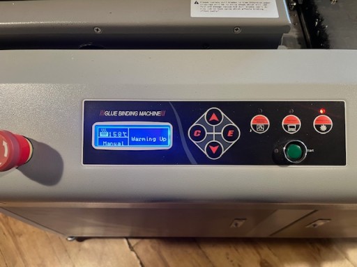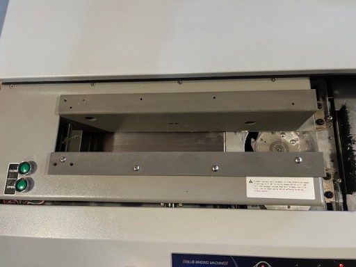 Używana oklejarka 950 Z do oprawy książek, bloczków. Maszyna posiada manualny i automatyczny tryb pracy, frezowanie i nacinanie oprawianych kartek, automatyczny zacisk kartek, automatyczne łamanie i dociskanie okładki.