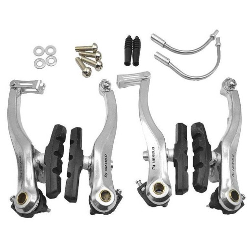 Zestaw zawiera: szczęki z klockami przód i tył, śruby montażowe, gumowe osłony, fajki prowadzące linkę.