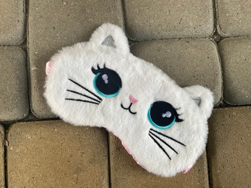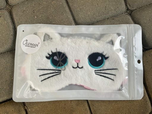 OPASKA NA OCZY MASKA DO SPANIA SNU RELAKSU KOT PLUSZOWY OLDMAN NA GUMCE