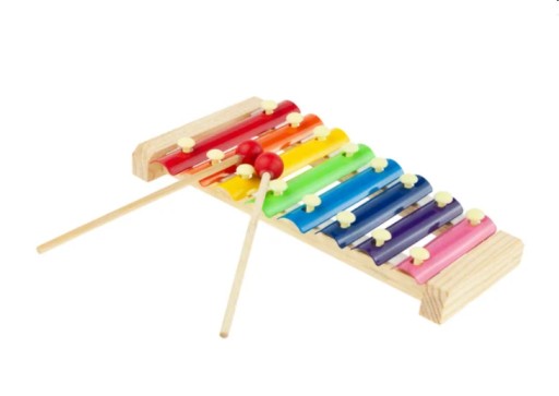 Posiada jasne, donośne dźwięki, które zapraszają do zabawy i tworzenia własnych melodii.