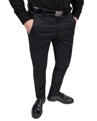 Элегантные черные гладкие мужские приталенные брюки — 30