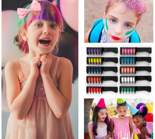 ✅Zestaw zawiera 10 kolorów, przy pomocy których stworzysz kolorową fryzurę. To doskonały gadżet na imprezę, wakacyjny wypad lub na co dzień.
