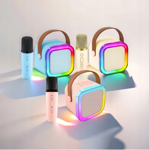 Dwuczęściowy, bezprzewodowy zestaw do karaoke mikrofon + głośnik. To świetlne źródło rozrywki i towarzysz imprez. Twoje imprezy wejdą na wyższy poziom.