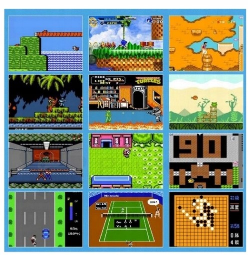 Contra, Super Contra, Chip & Dale, World Cup Soccer, Tetris 2, Tank A1990, Street Fighter V, kultowy Super Mario Bros, Super Mario Bros 3, Super Mario Bros 6, Super Mario 14, a ponadto: Batman, Spider Man, Tom & Jerry, Pacmania, 1942, Angry Bird, Arkanoid, Dr. Mario, F1 Race, Pac-Man, Donkey Kong, Bomberman, Galaga, Galaxian, niezapomniany Pinball, Space Invaders, czy Zippy Race.