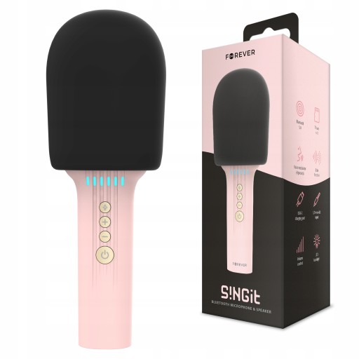 Nie tylko mikrofon – to całe wielofunkcyjne urządzenie. W trzon mikrofonu wbudowany jest głośnik, który zarówno emituje muzykę, jak i śpiew.