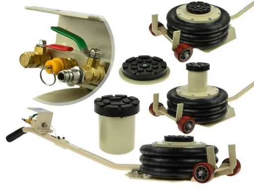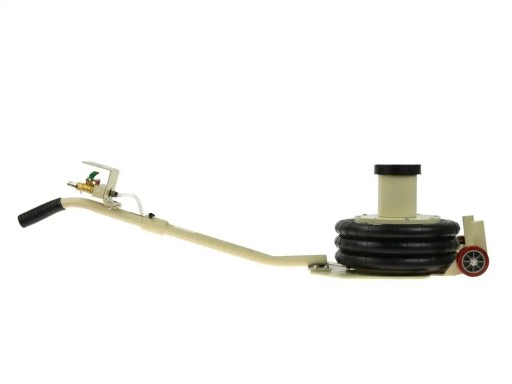 Podnośnik pneumatyczny poduszkowy czyli tzw. bałwanek. Maksymalny udźwig podnośnika wynosi 3500 kg. Cechy produktu Regulacja wysokości podnoszenia w zakresie od 150 do 500 mm. Zawór zasilający oraz zawór zwalniający znacznie ułatwiają pracę Dwa koła i regulowana rączka pozwalaja na łatwy i szybki transport podnośnika. Poduszkę podnośnika wykonano ze zbrojonego kauczuku. Zawór podciśnienia pozwala na całkowite spuszczenie powietrza Wysokiej jakości teleskop zastosowany wewnątrz poduszki zapewnia stabilność konstrukcji podczas podnoszenia. Gumowa podkładka na górze podnośnika zapobiega przemieszczaniu się podnoszonego ładunku. Dane techniczne Maksymalne obciążenie: 3500 kg Minimalna wysokość podnoszenia: 150 mm Maksymalna wysokość podnoszenia: 500 mm Średnica poduszki gumowej: 270 mm Średnica gumowej podkładki: 100 mm Ciśnienie robocze: 7 - 10 bar Funkcje dodatkowe: zawór bezpieczeństwa przy ciśnieniu 10 bar