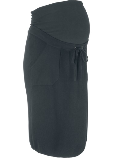Krótka spódnica dzianinowa ciążowa z elastycznego dżerseju. Pasek na brzuch, wiązany pasek oraz 2 kieszenie zapewniają wygodne noszenie.