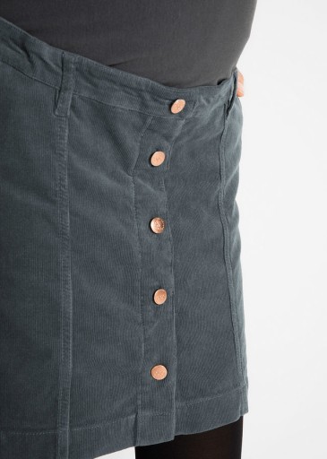 Spódnica z elastycznym paskiem pozwalającym na indywidualne dopasowanie do rosnącego brzucha przez całą ciążę.