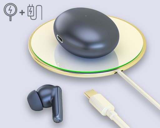 Słuchawki ładujemy indukcyjne poprzez umieszczenie ich w etui z bankiem energii.