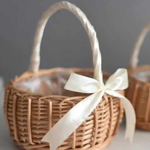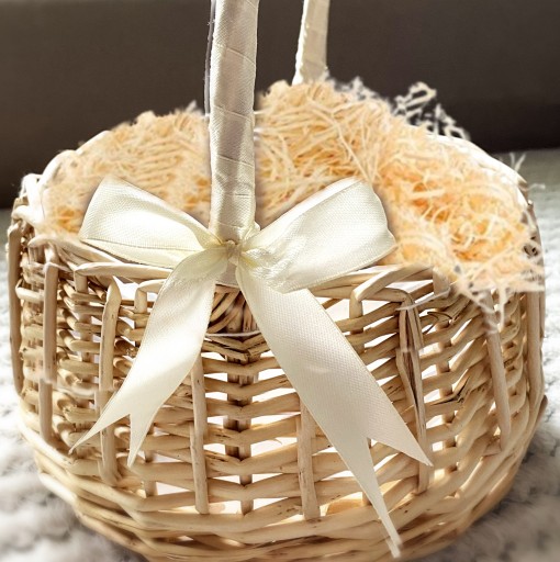 ✔️ Ręcznie pleciony koszyk prezentuje się pięknie, a wstawka w formie wstążki na pałąku zakończona kokardą dodaje subtelności i uroku.