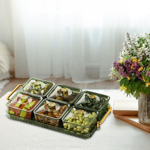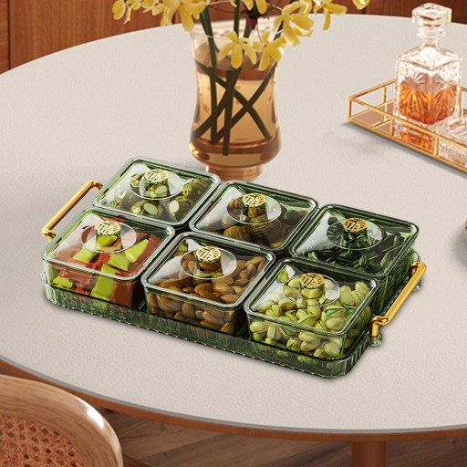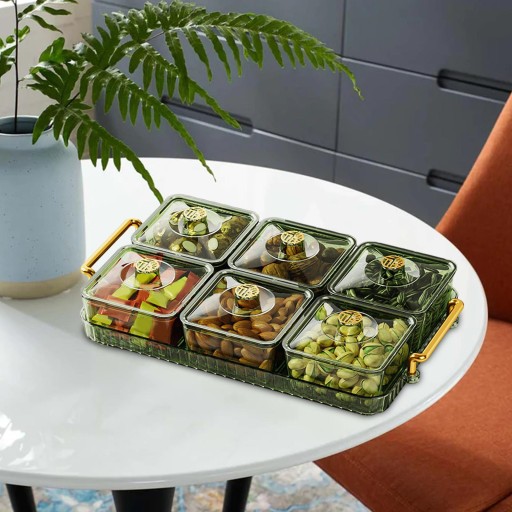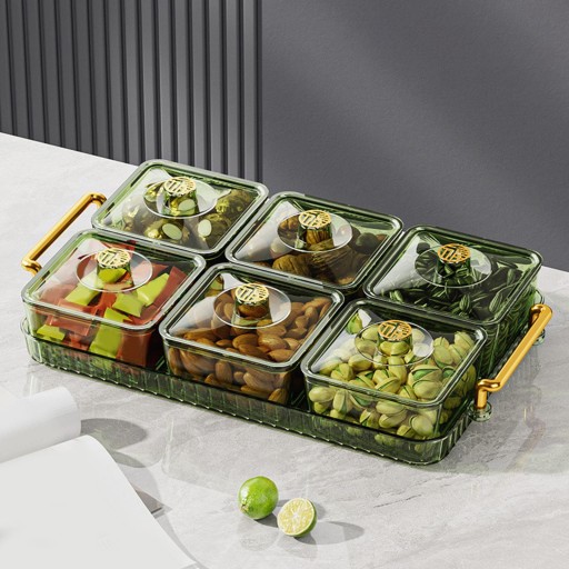 Taca na suszone owoce z pokrywką Ekspozytor Łatwa do uzupełnienia przekąska 6 siatka zielona