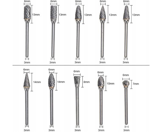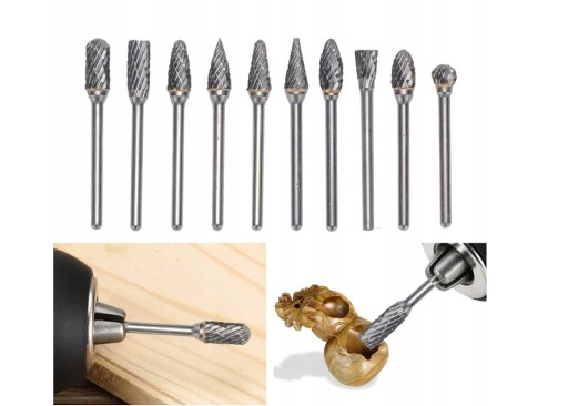 - FREZ PILNIK ZESTAW METALU WĘGLIK OBROTOWY WOLFRAMU 10 SZT -