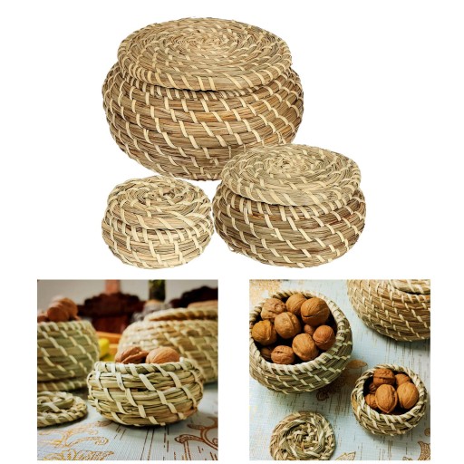 3 okrągłe kosze do przechowywania trawy morskiej z pokrywką