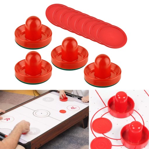 4 толкателя для аэрохоккея и 8 стандартных шайб с зеленой фетровой подкладкой, большие красные