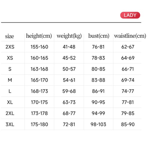 Tabela rozmiarów: zalecana wysokość 170 cm-175 cm/66,93 cala-68,90 cala, talia 77 cm-81 cm/30,31 cala-31,89 cala