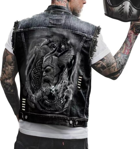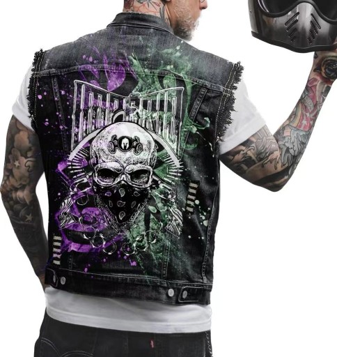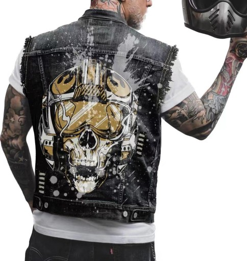 Męska kamizelka dżinsowa z modnym nadrukiem kości czaszki
