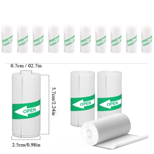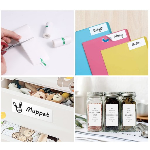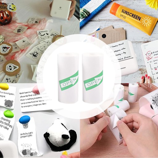 Papier termiczny samoprzylepny idealny do drukowania etykiet kategorii, dokumentów, notatek i zdjęć, bez konieczności stosowania tuszu.