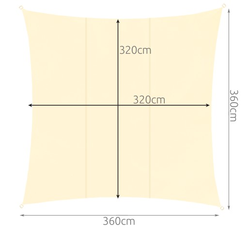 - SPECYFIKACJA - kolor: beżowy; materiał: poliester + stal nierdzewna - pierścienie mocujące + sznurek: nylon; gęstość: 120g / m2; wymiary do uchwytów: 3,6 x 3,6 m; waga: 1,58 kg; waga w opakowaniu: 1,608 kg.