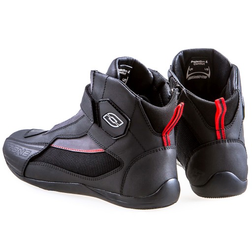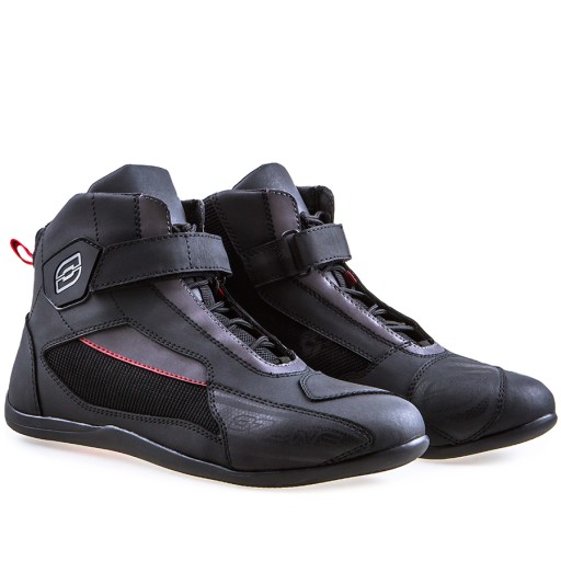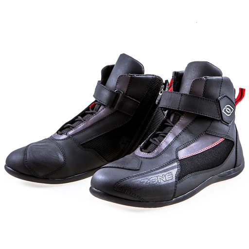 Krótkie, miejskie buty motocyklowe – Ozone CITY. Będą odpowiednim uzupełnieniem stylówki na motocykl typu naked lub klasyk. Posiadają wygodne sznurowania oraz zapięcie na rzep i zamek – dla wygody zakładania. Ochraniacze kostki i wzmocnienie pod dźwignię zmiany biegów, olejoodporna i antypoślizgowa podeszwa sprawiają, że buty Ozone City są bezpieczne.