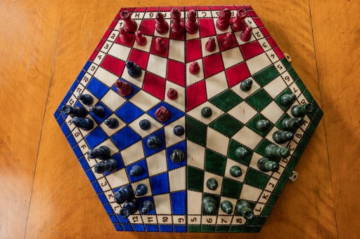 Малый трехцветный набор шахмат для троих/Шахматы для троих