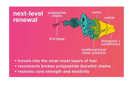 Odnawia wszystkie rodzaje włosów: nie tylko ukrywa uszkodzenia lub łata je, pozostawiając włosy łamliwe, ale przekształca nawet najbardziej ekstremalne uszkodzenia we włosy, które wyglądają i czują się jak nowe. działa na wszystkie rodzaje włosów, wszystkie pokolenia, wszystkie typy ekspresji.