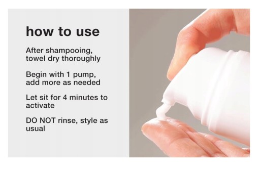 potrzeby, w zależności od długości, grubości i stanuwłosów. Rozprowadzić równomiernie na włosach, pojednej pompce na raz, od końcówek do skóry głowy.