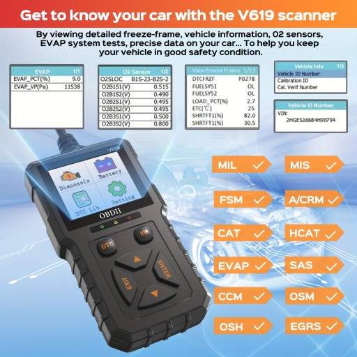 Skaner OBD2, czytnik kodów OBDII samochodu sprawdź lampkę silnika, pełne