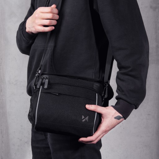 Chcesz zawiesić torbę na ramieniu? Odepnij ją od roweru, zaczep pasek o boczne klamry i dla własnej wygody zapnij też tylny rzep, który osłania bazę uchwytu rowerowego. Gotowe!