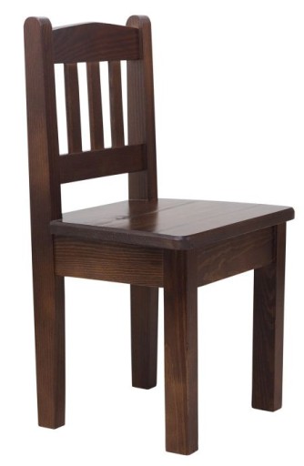 Krzesełko przygotowane z myślą o dziecku w kolorze lakierowanej sosny. Siedzisko jest zrobione z litego drewna sosnowego metodą czopowania i klejenia przez co jest bardzo solidne.