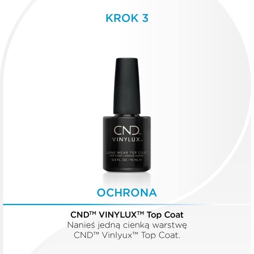 - Zakończ jedną warstwą CND Vinylux Top Coat.