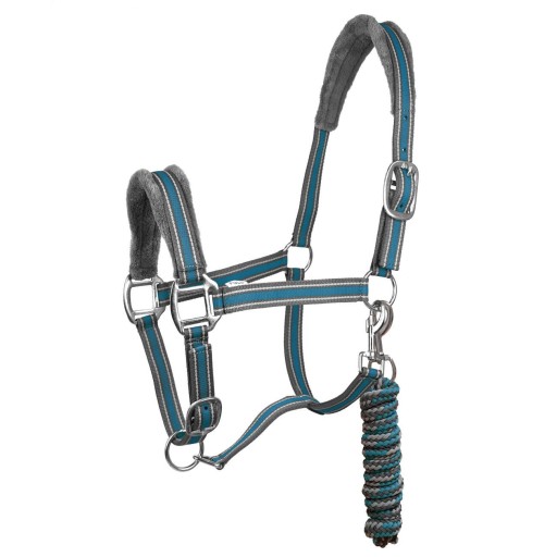 kantar posiada możliwość regulacji na nachrapniku i pasku potylicznym, które jednocześnie zostały podszyte miłym w dotyku sztucznym futerkiem