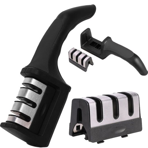 Ręczna ostrzałka do noży to 3 gniazda, które posiadają różne funkcje ostrzące. Każdy z etapów ostrzenia jest tak samo ważny, dlatego nie należy ich pomijać.