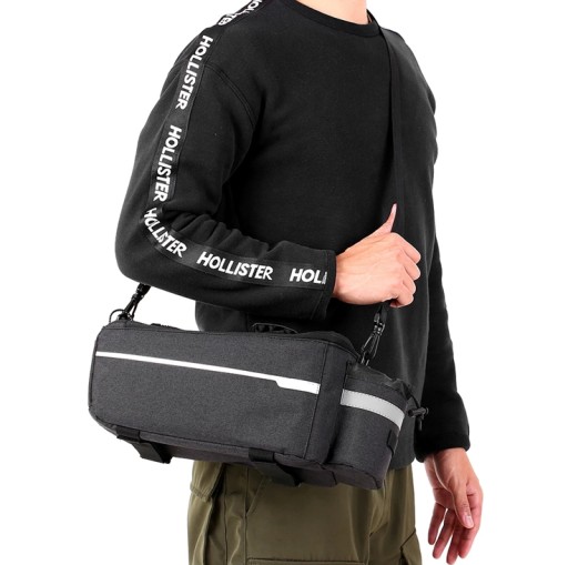 ⭐ Ponadto sakwa została wyposażona w uchwyt do przenoszenia. Po odczepieniu torby od bagażnika można chwycić ją w rękę i zabrać ze sobą. Jeśli natomiast konieczna jest dalsza podróż, przyda się dopinany pas do zakładania na ramię, który również znajduje się w zestawie.