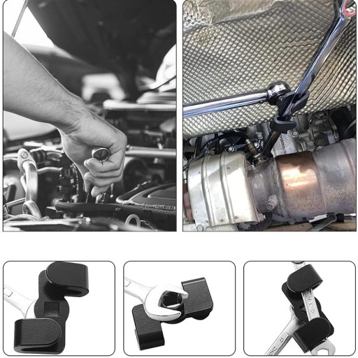 - Połączenie 2 kluczy płasko-oczkowych tworzy przedłużenie, a przy bezpiecznym ustawieniu, zastosowanie większego momentu obrotowego do kluczy może pomóc zmniejszyć nacisk bez narażania kostek na ryzyko.