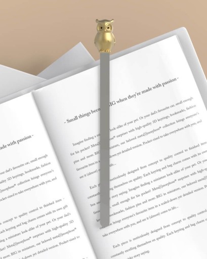Nic tak nie łączy książek i lasu jak sowa (oczywiście biorąc pod uwagę motywy animalistyczne). Las to sowa, sowa to mądrość, mądrość zaś ponoć zaklęta jest w książkach. Wiadomo to porównanie nie było konieczne, gdyż zdaje się oczywiste, jednakowoż należało uwypuklić tę analogię. Zakładka do książki sowa pasuje wobec tego do miłośników literatury i nauki. Ale nie tylko dzięki aspektowi wizualnemu przypadnie do gustu również osobom, które lubią wchodzić w posiadanie pięknych przedmiotów. Zakładka do książki sowa to złota figurka w wiadomym kształcie umieszczona na długim pasku, który docelowo ma się znaleźć w książce. Całość wyprodukowano ze stopu cynku (dla jasności bardzo wytrzymałego materiału). Przepięknie wygląda w użyciu, jednak warto poświęcić kilka chwil przed rozpakowaniem na docenienie walorów pudełka. Tuba akrylowa uwypukla zalety produktu jeszcze przed wyjęciem go na tak zwane światło dzienne. Choć nie zaskakuje nas chęć natychmiastowego wsunięcia zakładki do ulubionego tomiku poezji. - Belgijska marka- Figurka 3D- Materiał: stop cynku,- Wymiary: 1,3 x 1,4 x 13,0 cm- Zapakowana w akrylową tubę.