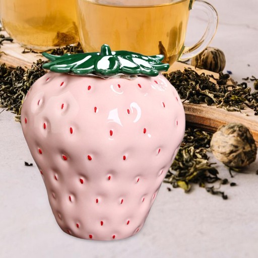 Ceramiczny pojemnik na herbatę w kształcie liści w kształcie truskawki na ladę domową herbaciarnię różowy