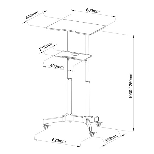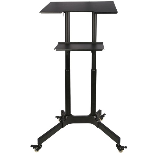 Półka dolna z regulacją wysokości zapewnia dodatkową przestrzeń do przechowywania, jednocześnie umożliwiając optymalne wykorzystanie miejsca. Półka górna, oprócz regulacji wysokości, pozwala także regulować nachylenie do -40 stopni, co sprawia, że jest idealnym miejscem do umieszczenia monitora czy projektora, zapewniając optymalny kąt widzenia.