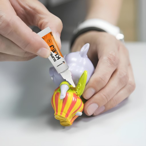 - Bezbarwnym kolorem dzięki czemu nie zostawia śladów na sklejanych przedmiotach