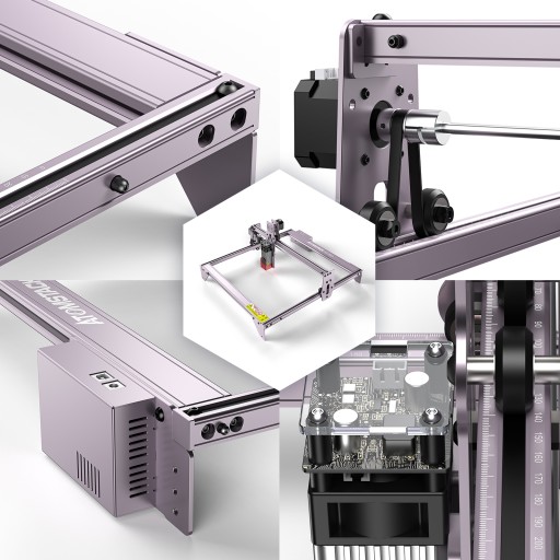 Konstrukcja maszyn Atomstack A5 40 W ze złączem prętowym, który może być najszybszą prędkością obrotową 11000/min. Jest bardziej stabilna i zwinna podczas grawerowania technologii, co ułatwia korzystanie z wyników