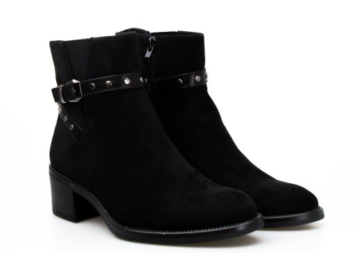 CZARNE BOTKI NA KLOCKU KLAMRA DŻETY EKO SKÓRA