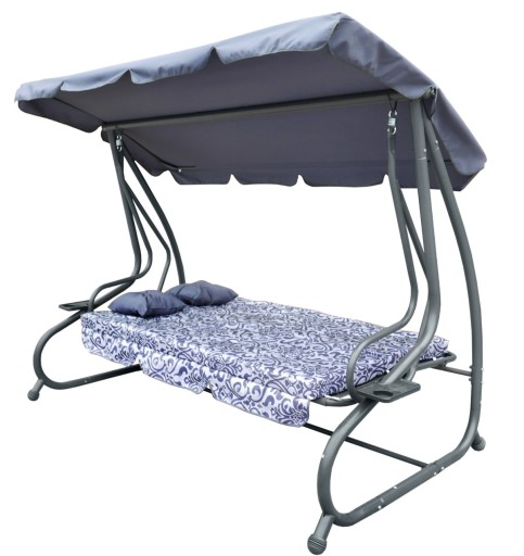 Za pomocą odchylanego oparcia, z huśtawki możemy zrobić wygodne łózko. Blokowane za pomocą metalowych zapinek tworzy stabilne oparcie dla ciała.