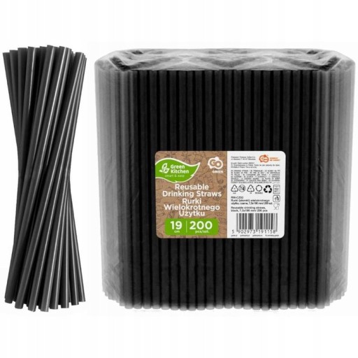 Czarne Słomki Wielorazowe Rurki Plastikowe 200 sztuk