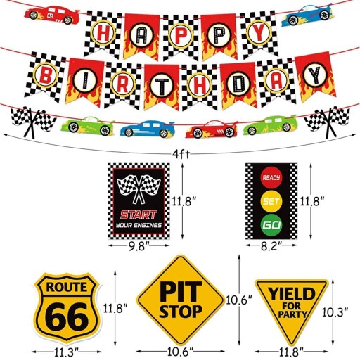 - Idealny zestaw urodzinowy na każdą okazję. Bogaty zestaw imprezowy można wykorzystać na przyjęcie urodzinowe, jest również idealny do dekoracji festiwalu i baby shower, nadaje się na imprezę o tematyce wyścigowej, urodziny i inne specjalne wydarzenia, które chcesz udekorować.