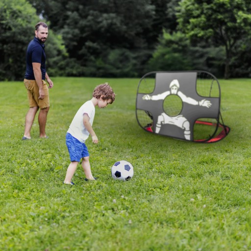 - Konstrukcja 2w1: Konstrukcja bramki pozwala na korzystanie z niej na różne sposoby. Pierwsza strona umożliwia trening celności, a druga klasyczną grę w piłkę nożną.