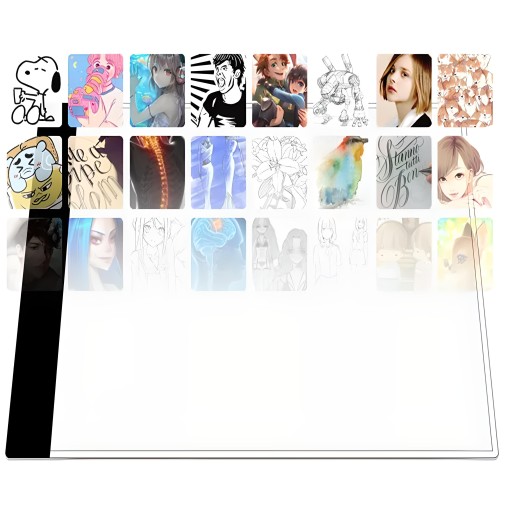 ⭕Dzięki bardzo dobremu podświetleniu LED o natężeniu 300-350 lm arkusz z danym obrazem, który chcemy odrysować prześwietli się na kartkę papieru