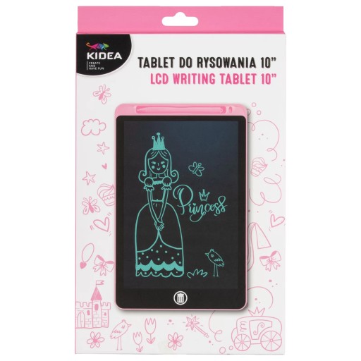 Lekki i wytrzymały tablet LCD/znikopis służący do rysowania lub nauki pisania. Można go używać zarówno w domu jak i w podróży, tworzyć, pisać i rysować a następnie jednym przyciskiem usunąć zapis i rozpocząć zabawę od nowa. Bardzo czuła matryca umożliwia dziecku pisanie dołączonym do zestawu rysikiem dokładnie tak, jak ołówkiem. Tablet o matrycy 10, bateria CR2032L w zestawie.