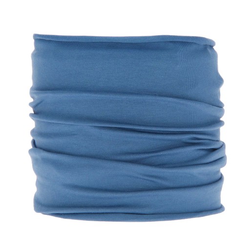 Pięknie odszyty lekki komin bawełniany w kolorze jeans doskonale sprawdzi się wiosną i jesienią.