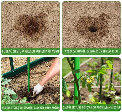 - tyczka wykonana z metalu i pokryta tworzywem sztucznym PE w kolorze zielonym dzięki czemu jest bardzo wytrzymała