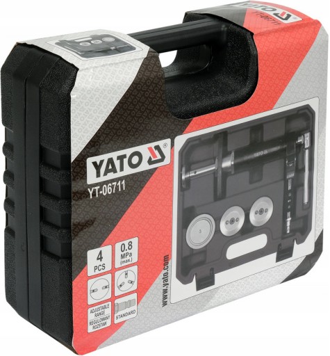 Pneumatyczny zestaw YATO do montażu tłoczków hamulcowych w prawie wszystkich modelach samochodów.