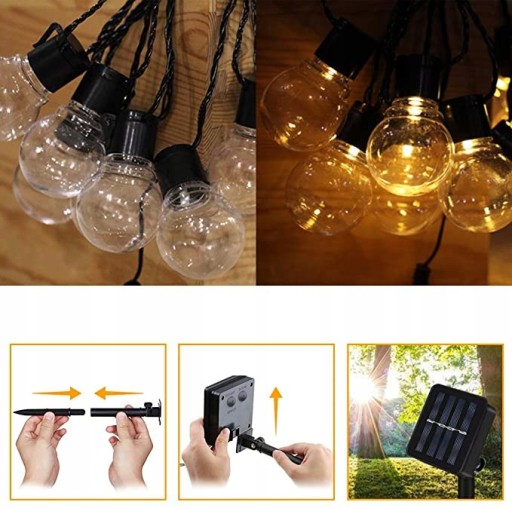 Girlanda lampa solarna 20 LED (20 żarówek) kolor światła żółty ciepły